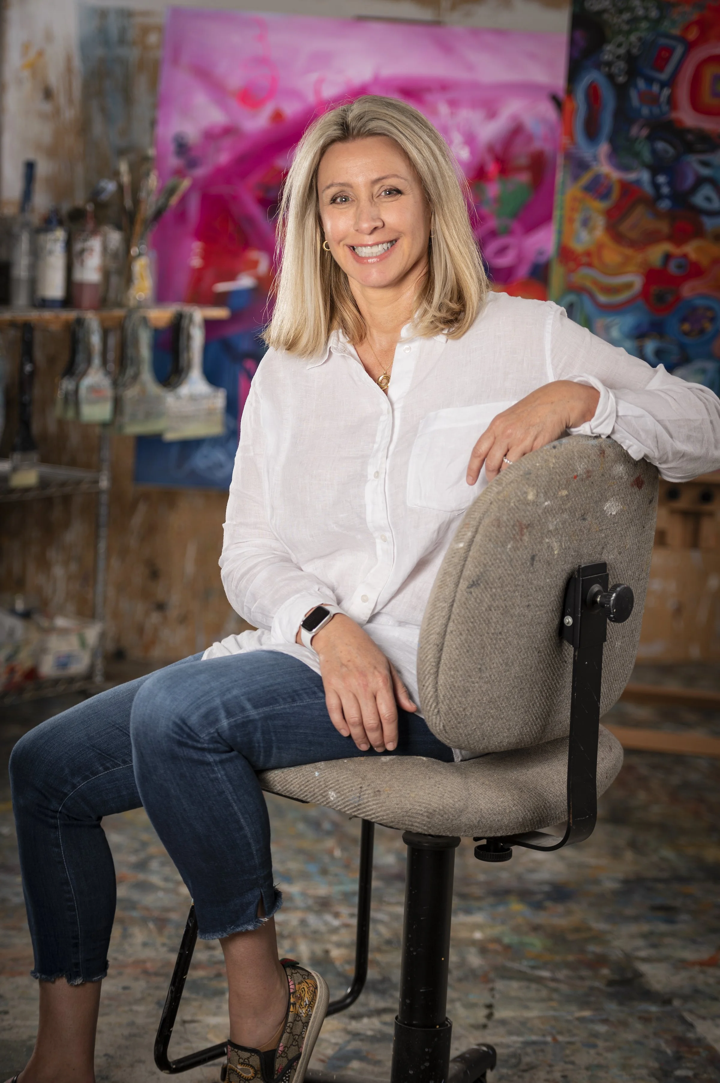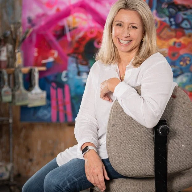 “I LOVE COLOR, AND MY WORKS ARE BOLD. I THINK THAT PEOPLE CONNECT FIRST WITH THAT BOLDNESS, THEN DISCOVER THE TEXTURES AND LAYERS UNDERNEATH THAT INTRIGUE THEM. EACH PIECE HAS MOTION, MISDIRECTION, SUBTLETY. IT'S A CELEBRATION OF THE WORLD'S COMPLEXITY: VIVID, IMPERFECT, LAYERED, AND ULTIMATELY JOYFUL.”